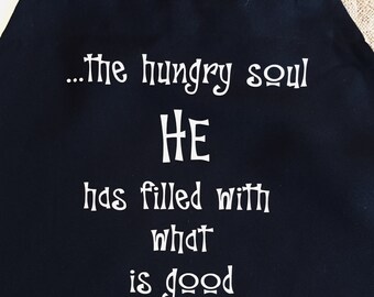 Scripture Verse Apron Black Psalm 107 9 The Hungry Soul Etsy
